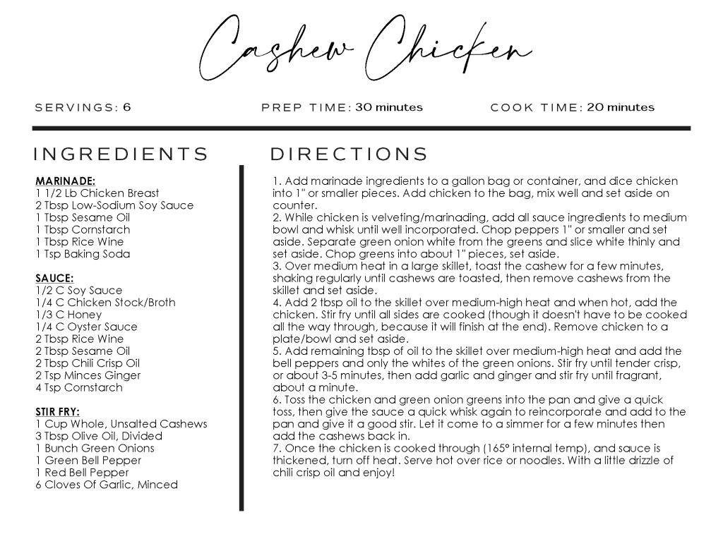 You know, I don’t really have a favorite recipe or food, though Asian-inspired foods are some of my favorite to eat. They can prove difficult to make… However, one of those easier to make dishes is cashew chicken. I found a recipe that was pretty awesome and tweaked it a bit to make it full blown amazing, and better than any takeout I have had.